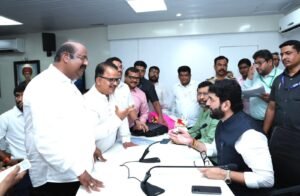 रायगड (उरण) :- दि.३ नवी मुंबई आंतरराष्ट्रीय विमानतळास लोकनेते दिबा पाटील यांच्या नावाचा ठराव दोन्ही विधिमंडळानी पास करून केंद्राला पाठविला आहे. त्यामुळे नाव तर दिबांचेच देणार अन्य नावाचा विचारही नाही असे ठाम आश्वासन केंद्रीय नागरी उडयन मंत्री श्री मुरलीधर मोहोळ यांनी दिले.राजेश गायकर (कामोठे), विनोद म्हात्रे (उरण – जासई ), किरण पवार ( कोल्ही कोपर ),शरद ठाकूर (माजी उपसरपंच धुतुम) यांनी आज केंद्रीय उडयन मंत्री श्री मुरलीधर मोहोळ यांची विमानतळ नामकरण बाबत मुंबई येथे भेट घेतली. लोकनेते दिबा पाटील यांचे नाव नवी मुंबई आंतरराष्ट्रीय विमानतळात देण्याबाबत राज्य शासनाचा ठराव नागरि विमान उड्डयन मंत्रालयात पाठवण्यात आला मात्र विमानतळ सुरू होण्यापूर्वी