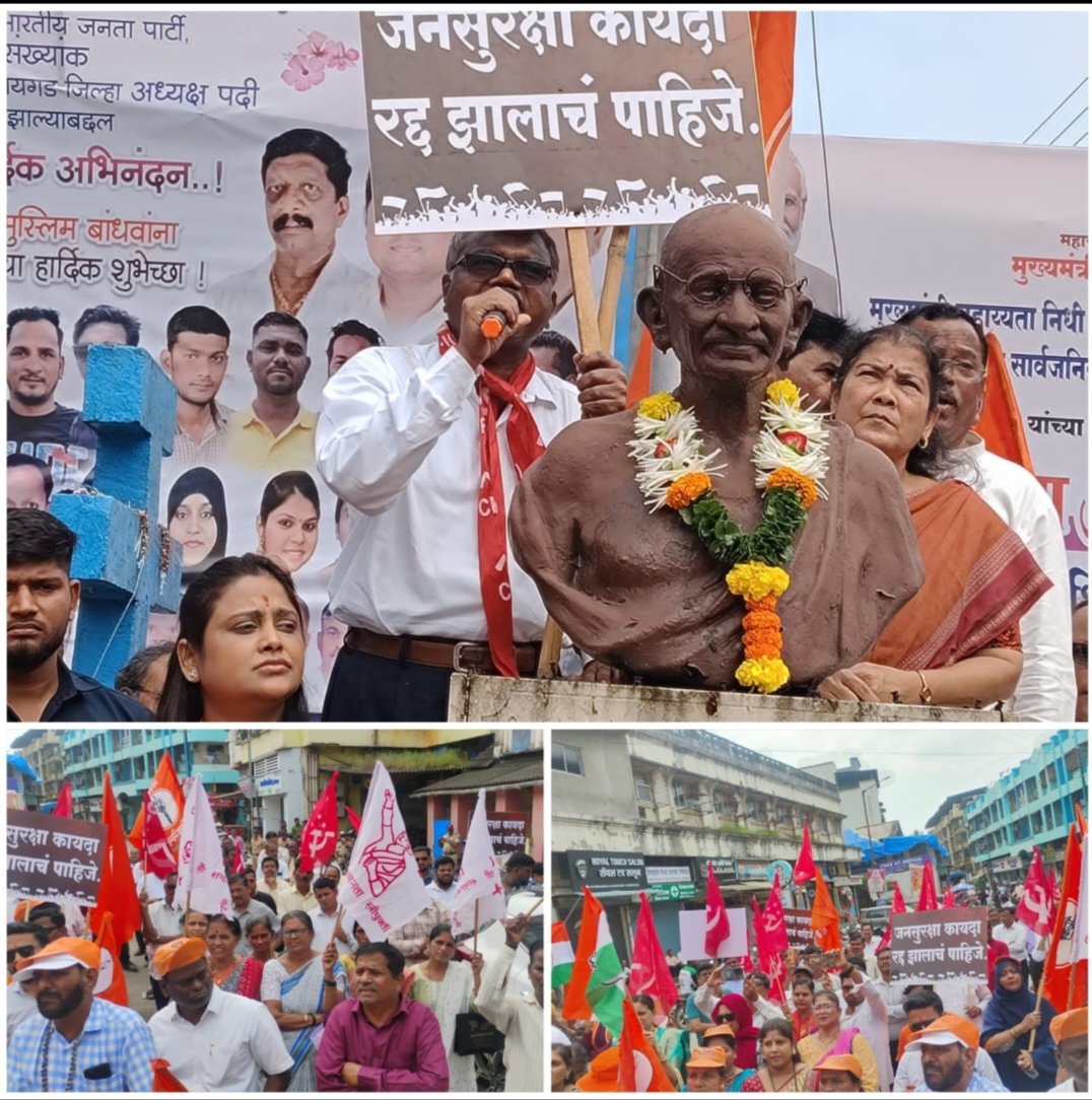 मागणीसाठी महाविकास आघाडीच्या पदाधिकारी कार्यकर्त्यांनी उरण शहरातील राष्ट्रपिता महात्मा गांधी यांच्या पुतळ्याला अभिवादन करुन निदर्शने केली .या कार्यक्रमात शिवसेना (उ.बा.ठा.), मार्क्सवादी कम्युनिस्ट पक्ष, कॉग्रेस, राष्ट्रवादी काँग्रेस (श.प.गट) शेतकरी कामगार पक्ष, क्रांतिकारी पक्ष, उरण सामाजिक संस्थांचे पदाधिकारी , प्रमुख राजकीय नेते व कार्यकर्ते सहभागी झाले होते.या वेळी माजी आमदार मनोहर भोईर, कॉम्रेड भूषण पाटील, कॉग्रेसचे विनोद म्हात्रे, राष्ट्रवादीच्या भावना घाणेकर, शेकापचे रवी घरत, सामाजिक कार्यकर्ते सत्यवान ठाकूर, सुधाकर पाटील यांनी लोकशाही विरोधी जन सुरक्षा कायदा रद्द करा या विषयावर मांडणी केली. तर सत्ताधारी भाजप युतीवर सडकून टीका केली.राज्य सरकारने मंजूर केलेल्या जनसुरक्षा कायद्याला विरोध करण्यासाठी बुधवारी उरण शहरातील गांधी पुतळा येथे महाविकास आघाडीच्या वतीने निदर्शने करण्यात आली.महाराष्ट्र राज्य सरकारने बहुमताच्या जोरावर विधानसभा, विधानपरिषदेत जनसुरक्षा कायदा पारीत केला आहे.सध्या हा कायदा राज्यपालांच्या सहीसाठी सादर करण्यात आला आहे.विधीमंडळातील चर्चेत कडवे, डावे हा शब्द अधोरेखित करुन जनतेच्या हितासाठी त्यांच्या बाजूने सरकारला जाब विचारणाऱ्या महाराष्ट्रातील अशा संघटनांवर कारवाई करणार ,बंदी घालणार आहे असे स्पष्ट केले आहे. या कायद्यामुळे लोकशाही मार्गाने काम करणाऱ्या पक्ष व जनसंघटनांवर आघात होण्याची शक्यता अधिक आहे. त्यामुळे या कायद्याला विविध राजकीय पक्ष आणि सामाजिक संस्थेच्या वतीने विरोध केला जात आहे.सर्वत्र या कायद्याला विरोध होत असून उरण मध्येही जन सुरक्षा कायद्याला मोठया प्रमाणात विरोध पहायला मिळाला.निदर्शनें केल्या नंतर सर्व निदर्शक मोर्चाने गणपती चौक,जरीमरी मंदिर मार्गे उरण तहसीलदार कार्यालयावर गेले व निवेदन सादर केले.