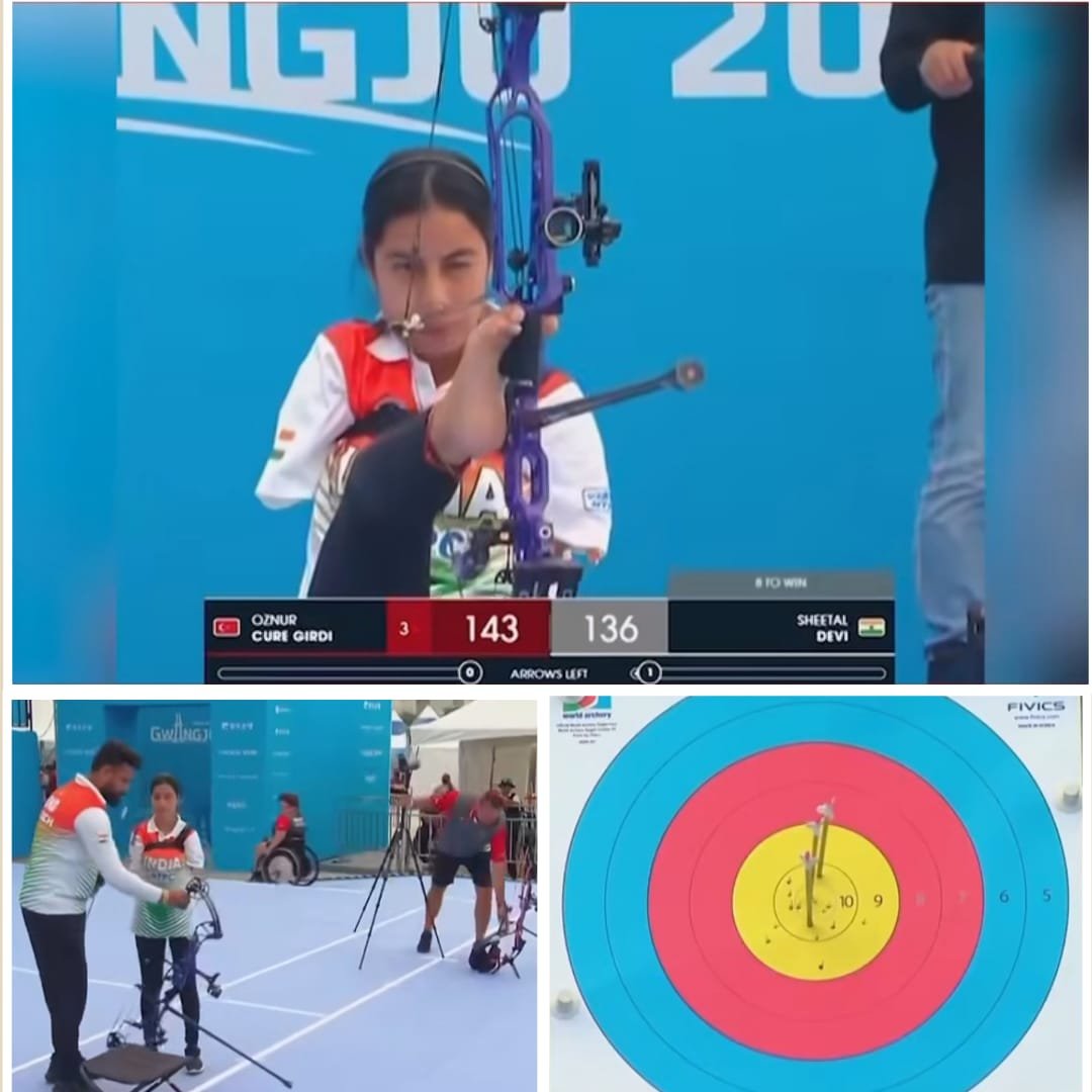 मुंबई :- दिनांक:३०सप्टेंबर२०२५ तिरंदाजीतील ‘दुर्गा’..! खांद्यापासून हात नसलेल्या शीतल देवीनं रचला इतिहास; विश्व तिरंदाज स्पर्धेत जिंकलं सुवर्णपदक.भारताची १८ वर्षीय तिरंदाज शीतल देवीने शनिवारी दक्षिण कोरियाच्या ग्वांगजू येथे झालेल्या पॅरा विश्व तिरंदाज जेतेपद स्पर्धेत शानदार कामगिरी करत विश्वजेतेपद पटकावले. वैयक्तिक तिरंदाज प्रकारात शीतल देवीने तुर्कीयेच्या अव्वल क्रमांकाच्या ओझनूर क्युर गिर्डीचा १४६-१४३ ने पराभव करत सुवर्णपदक जिंकले. पॅरा विश्व तिरंदाज जेतेपद स्पर्धेत दोन्ही हात खांद्यापासून नसलेली शीतल देवी ही एकमेव खेळाडू आहे. आपल्या पायांचा आणि हनुवटीचा वापर करून ती धनुष्यातून बाण सोडते.आज मानवाला सर्व अवयव धडधाकट असून जे साद्य करता येत नाही पण दोन्ही हात नसतानाही ही शितल देवी आज तिरंदाज मध्ये विश्व विजेती ठरते .कौतुकास्पद बाब आहे.पुढील वाटचालीस शुभेच्छा ! अभिनंदन.