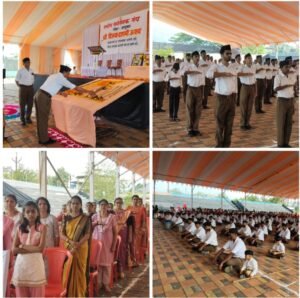 रायगड (रोहा) :- राष्ट्रीय स्वयंसेवक संघ, रोहा तालुक्याचा श्री विजयादशमी उत्सव अत्यंत उत्साह, शिस्त आणि देशभक्तीच्या वातावरणात रविवार, दिनांक ५ ऑक्टोबर २०२५ रोजी दुपारी ३:३० वाजता नदी संवर्धन मैदान, रोहा (जि. रायगड) येथे संपन्न झाला.हिंदू समाजात शौर्य आणि शक्तीचे जागरण करणारा हा पवित्र सण यंदा अधिक वैशिष्ट्यपूर्ण ठरला, कारण राष्ट्रीय स्वयंसेवक संघाच्या स्थापनेला यंदा १०० वर्षे पूर्ण होत आहेत. या शताब्दी पर्वानिमित्त स्वयंसेवकांमध्ये विशेष उत्साह दिसून आला.कार्यक्रमाचे प्रमुख अतिथी डॉ. अशोक अप्पासाहेब जाधव (M.B.B.S., M.D. Gen. Med) यांनी आपल्या भाषणातून समाजसेवा, आरोग्य आणि नैतिक मूल्यांचे महत्त्व अधोरेखित केले.तर प्रमुख वक्ते श्री. सुनिलजी मधुकर पाटील, रायगड विभाग सहकार्यवाह, राष्ट्रीय स्वयंसेवक संघ यांनी संघाचे शताब्दी वर्ष, संघकार्याची दिशा आणि राष्ट्रनिर्मितीतील स्वयंसेवकांची भूमिका यावर प्रेरणादायी मार्गदर्शन केले.कार्यक्रमात स्थानिक स्वयंसेवकांनी प्रात्यक्षिके सादर केली तसेच शाखेचे महत्त्व, संघगीत आणि प्रार्थनेने वातावरण भारावून गेले.रोहा तालुका संघचालक श्री. मंदार रामचंद्र परांजपे यांनी उपस्थित सर्व मान्यवरांचे आभार मानले आणि हिंदू समाजाच्या एकतेचा, संघटनेचा आणि राष्ट्रभक्तीचा संदेश दिला.या कार्यक्रमाला स्वयंसेवक, नागरिक, तसेच विविध सामाजिक संघटनांचे प्रतिनिधी मोठ्या संख्येने उपस्थित होते