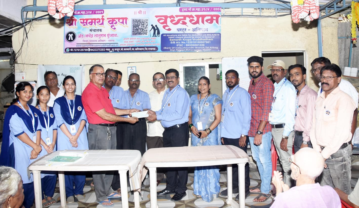 समर्थकृपा वृद्धाश्रम, परहुर (ता. अलिबाग)” या संस्थेला ₹२५,०००/- (पंचवीस हजार रुपये) इतक्या डिमांड ड्राफ्टद्वारे आर्थिक सहाय्य करण्यात आले. हा डिमांड ड्राफ्ट संस्थेचे व्यवस्थापक श्री. वैभव बोर्लीकर यांच्या हस्ते वृद्धाश्रमास प्रदान करण्यात आला.सदर प्रसंगी संस्थेचे अध्यक्ष श्री. योगेश मगर, संचालक श्री. हरेश गायकर, संचालक श्री. मोहन वैद्य, तसेच कर्मचारी मयुरी ठाकूर, गणेश मौर्य, नरेंद्र पाटील,वैष्णवी पिंपळे, निलेश पाटील, रिया पाटील, पूर्वजा वेताळ, शुभम सुंकले, स्वल्पबचत प्रतिनिधी सुनिल तांडेल, अनिल आंबोले, गितेश गुरव, संदेश कवळे आणि वृत्तपत्र छायाचित्रकार श्री. जितु शिगवण उपस्थित होते.या उपक्रमाद्वारे सहयोग पतसंस्थेने समाजातील दुर्बल घटकांप्रती आपली सामाजिक जबाबदारी आणि सेवाभाव अधोरेखित केला असून, रौप्यमहोत्सवी वर्ष अधिक अर्थपूर्ण बनविले आहे.