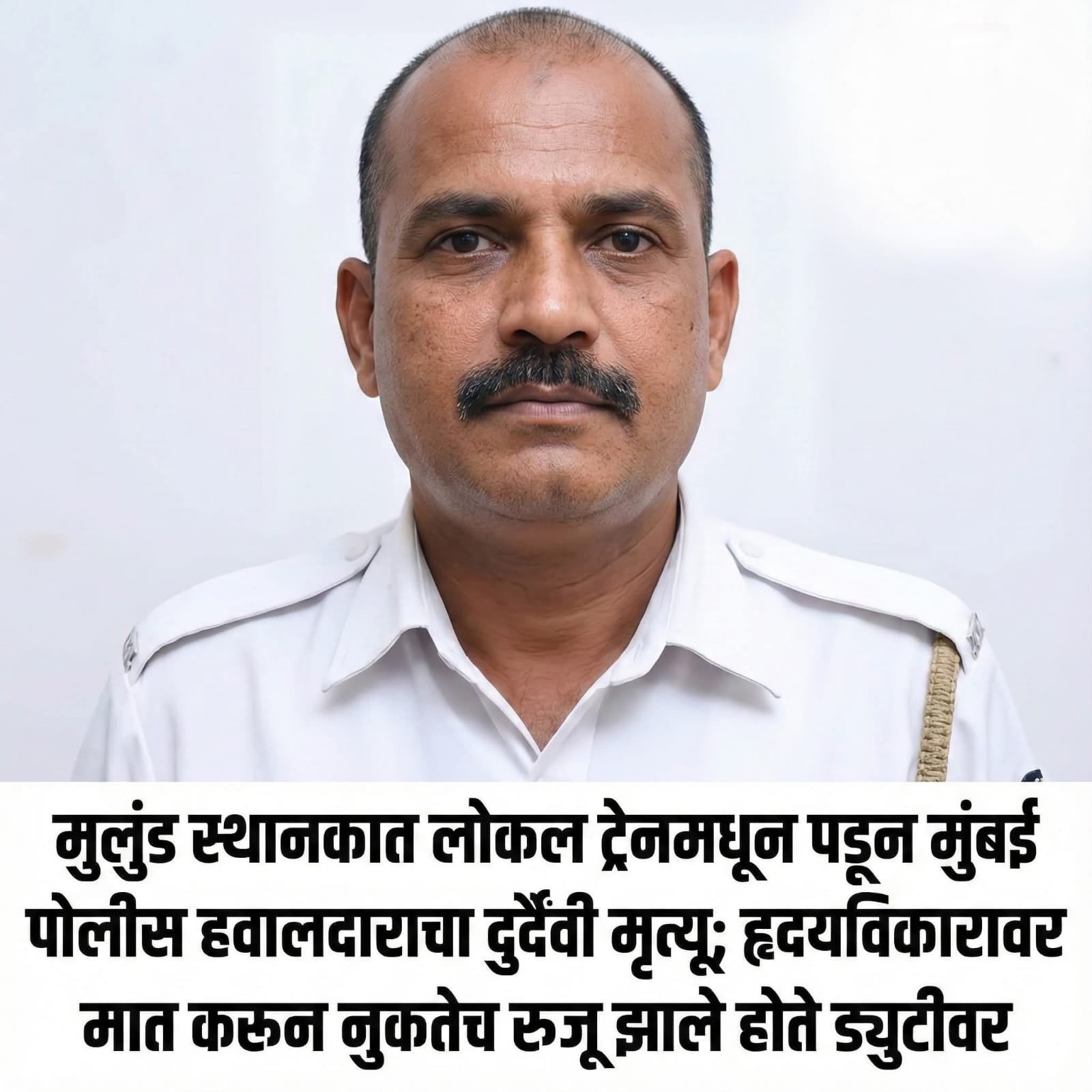 होते. सायंकाळी ५ च्या सुमारास ट्रेन मुलुंड स्थानकात शिरत असताना फूटबोर्डवर उभे असलेले सस्ते यांचा अचानक तोल गेला आणि ते प्लॅटफॉर्मवर पडले.त्यांच्यासोबत प्रवास करणाऱ्या दोन सहकारी कर्मचाऱ्यांनी (पोलीस शिपाई ब्राम्हणे, भगत आणि महाले यांच्या मदतीने) त्यांना तातडीने मुलुंडच्या अग्रवाल रुग्णालयात नेले. मात्र, डॉक्टरांनी त्यांना तपासून मृत घोषित केले.नियतीचा क्रूर खेळ: नुकतीच केली होती मृत्यूवर मात या घटनेची अधिक माहिती अशी की, देविदास सस्ते हे गेल्या काही महिन्यांपासून गंभीर आजाराशी झुंज देत होते. त्यांच्या हृदयात चार ब्लॉकेजेस आढळले होते, ज्यामुळे ते ७ ऑगस्ट ते २५ नोव्हेंबर या कालावधीत वैद्यकीय रजेवर होते. कल्याणच्या फोर्टिस रुग्णालयात त्यांच्यावर अँजिओग्राफी आणि उपचार करण्यात आले होते.प्रकृतीत सुधारणा झाल्याने २६ नोव्हेंबरला ते पुन्हा उत्साहाने सेवेत रुजू झाले होते. हृदयविकारासारख्या गंभीर संकटातून बाहेर पडल्यानंतर, अवघ्या महिनाभरातच अशा प्रकारे अपघाती मृत्यू झाल्याने पोलीस दलात आणि त्यांच्या नातेवाईकांमध्ये हळहळ व्यक्त केली जात आहे.पोलीस दलात शोककळा सस्ते हे मनमिळावू स्वभावाचे होते आणि त्यांना साहित्य व वाचनाची आवड होती. त्यांच्या पश्चात पत्नी आणि मुले असा परिवार आहे. या घटनेची नोंद पोलिसांत करण्यात आली असून, पोलीस विभाग त्यांच्या कुटुंबीयांना सर्वतोपरी मदत करत आहे.