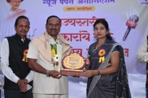 च्या नगराध्यक्षा अर्चनाताई ठाकरे यांच्या शुभहस्ते प्रदान करण्यात आला. पत्रकारिता क्षेत्रातील दीर्घकालीन, उल्लेखनीय व निष्ठापूर्ण योगदानाची दखल घेत हा सन्मान त्यांना प्रदान करण्यात आला.पत्रकारितेच्या माध्यमातून समाजातील विविध प्रश्न, घडामोडी व लोकहिताचे विषय सत्य, निष्पक्ष आणि निःस्वार्थपणे मांडण्याचे कार्य संपादक डॉ.श्री.किशोर पाटील यांनी सातत्याने केले आहे. ग्रामीण भागातील सर्वसामान्यांच्या समस्या प्रशासनापर्यंत पोहोचविणे, सामाजिक प्रश्नांना वाचा फोडणे तसेच जनजागृतीची प्रभावी भूमिका बजावणे या त्यांच्या कार्याची स्मॉल ॲन्ड मिडीयम न्यूज पेपर असोसिएशन सिंधुदुर्ग यांनी राज्यस्तरावर दखल घेतली आहे. त्यांच्या कार्यामुळे समाजात जागरूकता निर्माण झाली असून नव्या पिढीतील पत्रकारांसाठी ते प्रेरणास्थान ठरले आहेत.हा सन्मान सोहळा शनिवार, दि. २१ फेब्रुवारी २०२६ रोजी नगर भवन, हनुमान वॉर्ड, वरोरा, जि. चंद्रपूर येथे विविध मान्यवरांच्या उपस्थितीत मोठ्या उत्साहपूर्ण वातावरणात संपन्न झाला. या कार्यक्रमास राज्यभरातील पत्रकार, संपादक व विविध क्षेत्रातील मान्यवर मोठ्या संख्येने उपस्थित होते.या निवडीबद्दल नगरपंचायत वरोरा च्या नगराध्यक्षा अर्चनाताई ठाकरे,संस्थेचे राष्ट्रीय अध्यक्ष उत्तमराव वाडकर, राष्ट्रीय सचिव ईश्वरसिंह सेंगर, राष्ट्रीय कार्याध्यक्ष योगेश तुरेराव, राज्य अध्यक्ष संतोष धरमकर (महाराष्ट्र) तसेच राज्य सचिव आशिष घुमे (महाराष्ट्र) यांनी संपादक डॉ.श्री.किशोर पाटील यांचे अभिनंदन करून पुढील वाटचालीस शुभेच्छा दिल्या…