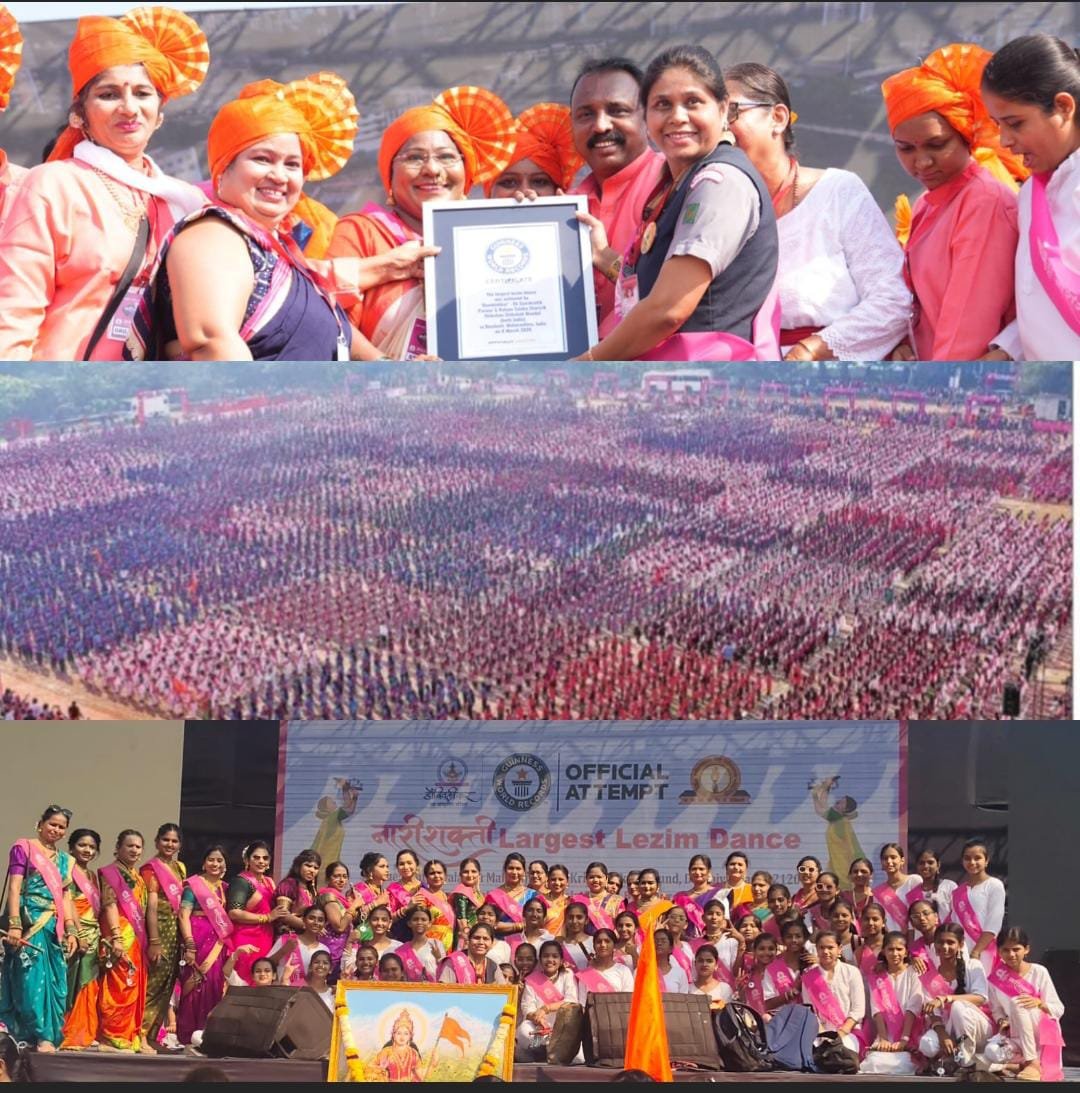 डोंबिवली येथील मैदानावर सामूहिक लेझीम वादनात विश्वविक्रमाची नोंदणी.