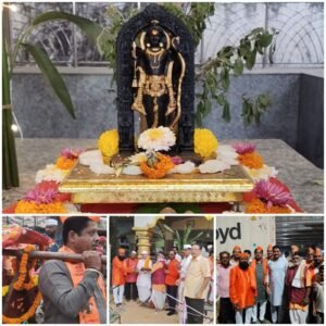 रायगड (कोलाड) :-(आ.म.टॅा.टे.न्यू ) पंचक्रोशीतील सकल हिंदू समाजाच्या वतीने प्रभू श्रीरामचंद्र जन्मोत्सव अत्यंत भक्तिमय आणि उत्साहपूर्ण वातावरणात मोठ्या श्रद्धेने साजरा करण्यात आला. या सोहळ्याला पंचक्रोशीतील सर्व स्तरातील नागरिकांचा उत्स्फूर्त प्रतिसाद लाभला.कार्यक्रमाची सुरुवात दुपारी तीन वाजता भगवान श्री सत्यनारायणाच्या महापूजेद्वारे करण्यात आली. तसेच प्रभू रामलल्लांच्या जन्मोत्सवानिमित्त विशेष पूजा विधी पार पडले. ही पूजा पुरोहित श्री अनंत जोशी व