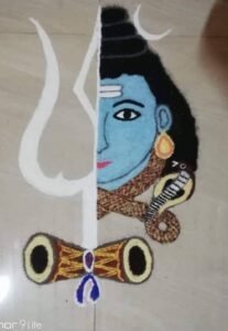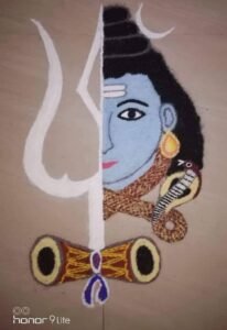 श्रावणी सोमवार निमित्ताने रुपाली ताई भोसले यांनी भगवान शंकराची अर्धाकृती रांगोळी सादर केली
