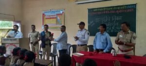 खवटी पंचक्रोशी शिक्षण संस्था खवटी येथे PSI चांदणे साहेब यांनी स्वातंत्र्याचा अमृत महोत्सव हर घर तिरंगा या उपक्रमासाठी, वाहतुकीच्या नियमां संबधी मार्गदर्शन केले