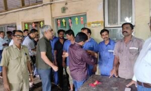 रत्नागिरी/खेड :-यावेळी ग्राहक पंचायतीच्या कार्यकर्त्यांनी एसटी आगारातील अधिकारी, कर्मचारी यांना सदभावनेची स्नेहपूर्वक सूत्र अर्थात राखी बांधली. तो हा क्षण! यावेळी ग्राहक पंचायतीचे कोकण प्रांत कार्यकारिणी सदस्य श्री. श्रीकांत चाळके, तालुका