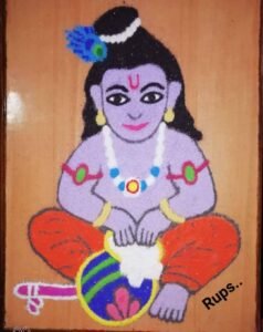 प्रसिद्ध रांगोळी कलाकार रुपाली भोसले यांच्याकडून श्री कृष्ण जन्माष्टमी निमित्ताने बाळ गोपाळाची रांगोळी सादर..