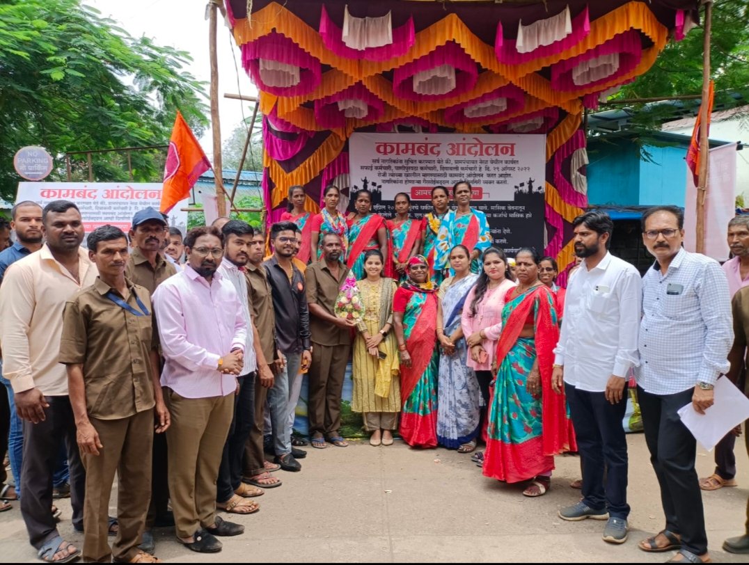 कामगारांच्या प्रश्नासंदर्भात नेरळ ग्रामपंचायत प्रशासनाच्या विरोधात कामबंद आंदोलन..