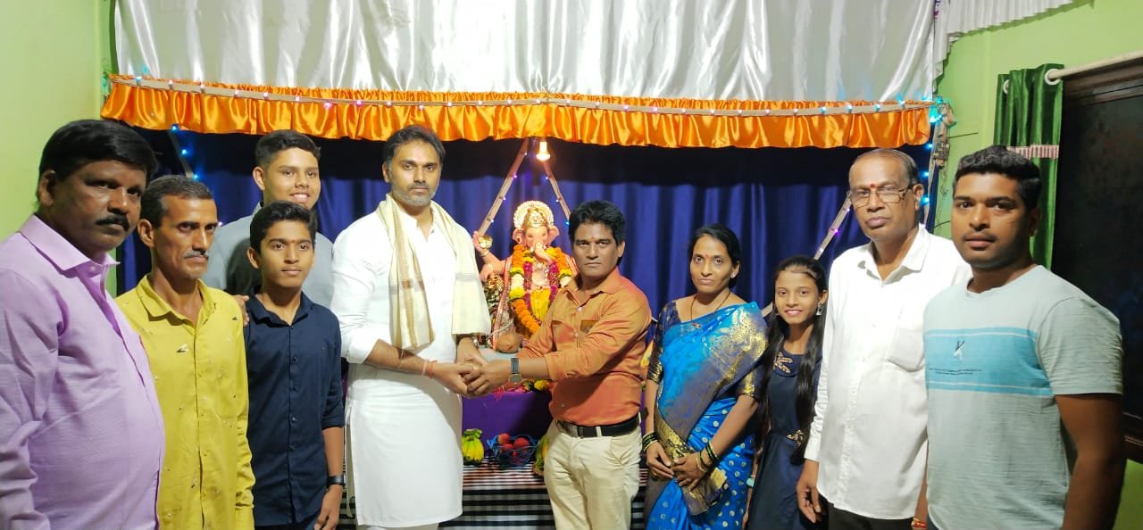 खेड तालुका,आमदार श्री.योगेशदादा कदम यांनी कार्यकर्त्यांसह श्री.गणेश भोसले यांच्या निवासस्थानी जाऊन श्री.गणेश दर्शन घेतले