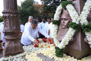 कोल्हापूर :- आज राज्याचे उच्च व तंत्रशिक्षण मंत्री चंद्रकांत पाटील यांनी लोकराजा राजर्षी शाहू महाराज जयंती निमित्त राजर्षी शाहू महाराजांच्या जन्मस्थळी जाऊन महाराजांना अभिवादन केले. त्यानंतर कोल्हापुरातील नर्सरी बागेतील राजर्षी छत्रपती शाहू महाराजांच्या समाधी स्मारक सुशोभिकरणाच्या दुसऱ्या टप्प्यातील कामांचे भूमिपूजन कार्यक्रमास त्यांनी उपस्थिती लावली.