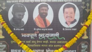 जालना :- जालना जिल्ह्यातील भोकरदन येथे छत्रपती शिवाजी महाराज चौकामध्ये मराठा समाजाला आरक्षण मिळावे यासाठी बलिदान देणारे कै. मंगेश काळे कै. सुनील बाबुराव कावळे. कै. विलास पवार यांना भोकरदन येथे शिवाजी चौका व शिवाजी महाराजा च्या पुतळ्याजवळ त्यांच्या प्रतिमेला भोकरदनच्या विष्णू गाडे व वर्धमान जाधव यांनी प्रतिमेला पुष्पहार घालून भावपूर्वक श्रद्धांजली देण्यात आली त्यावेळी सर्व भोकरदन येथील मंडळी