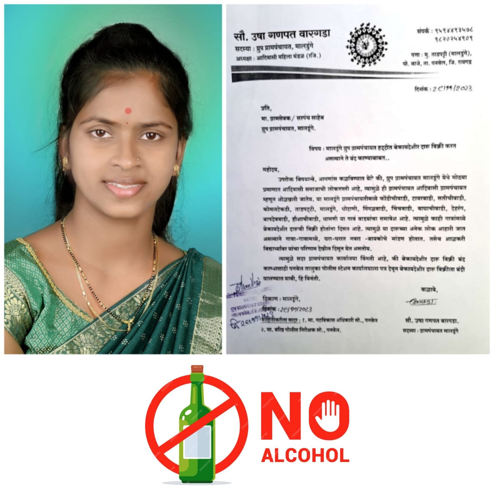 या गोष्टींचा विचार करून ग्रामपंचायत हद्दीतील दारू बंद करण्यासाठी नवनिर्वांचित सदस्या उषा गणपत वारगडा हिने पहिल्याच सभेत विषय घेवून ग्रामपंचायतीचे सरपंच सिताराम चौधरी, ग्रामसेवक सुरेश मोहिते यांना सांगत पोलीस विभागाला देखील ग्रामपंचायातीने दारू बंद करण्यासाठी पत्र व्यवहार करण्यासाठी विनंती केली आहे. व तसे लेखी पत्र देखील ग्रामपंचायतीच्या मासिक सभेमध्ये दिले आहे.