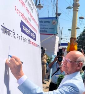 राज्यपाल रमेश बैस यांचा मतदार जागृती स्वाक्षरी मोहिमेत सहभाग: मतदारांनी २० मे रोजी मतदानाचा हक्क बजावण्याचे आवाहन