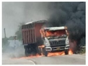 नागपुर (रामटेक) :- कोळसा वाहतुकीच्या धावत्या ट्रकला अचानक आग लागली. त्यात कोणतेही जीवितहानी झाली नाही. ही घटना नागपूर जिल्हातील पारशिवनी पोलीस ठाण्या अंतर्गत असलेल्या आमडी फाट्याजवळ महामार्गावर कोळशाने भरलेल्या ट्रकला आग लागली. यामुळे महामार्गावरील वाहतुक तिन तास ठप्प होती.कन्हान गोंडेगाव उपक्षेत्रातून महाजनको खापरखेडा जाणार्या एम एच-४० सीडी-७९४८ क्रमांकाच्या ट्रक हा एकुण ३८ टन ७५० किलो कोळसा
