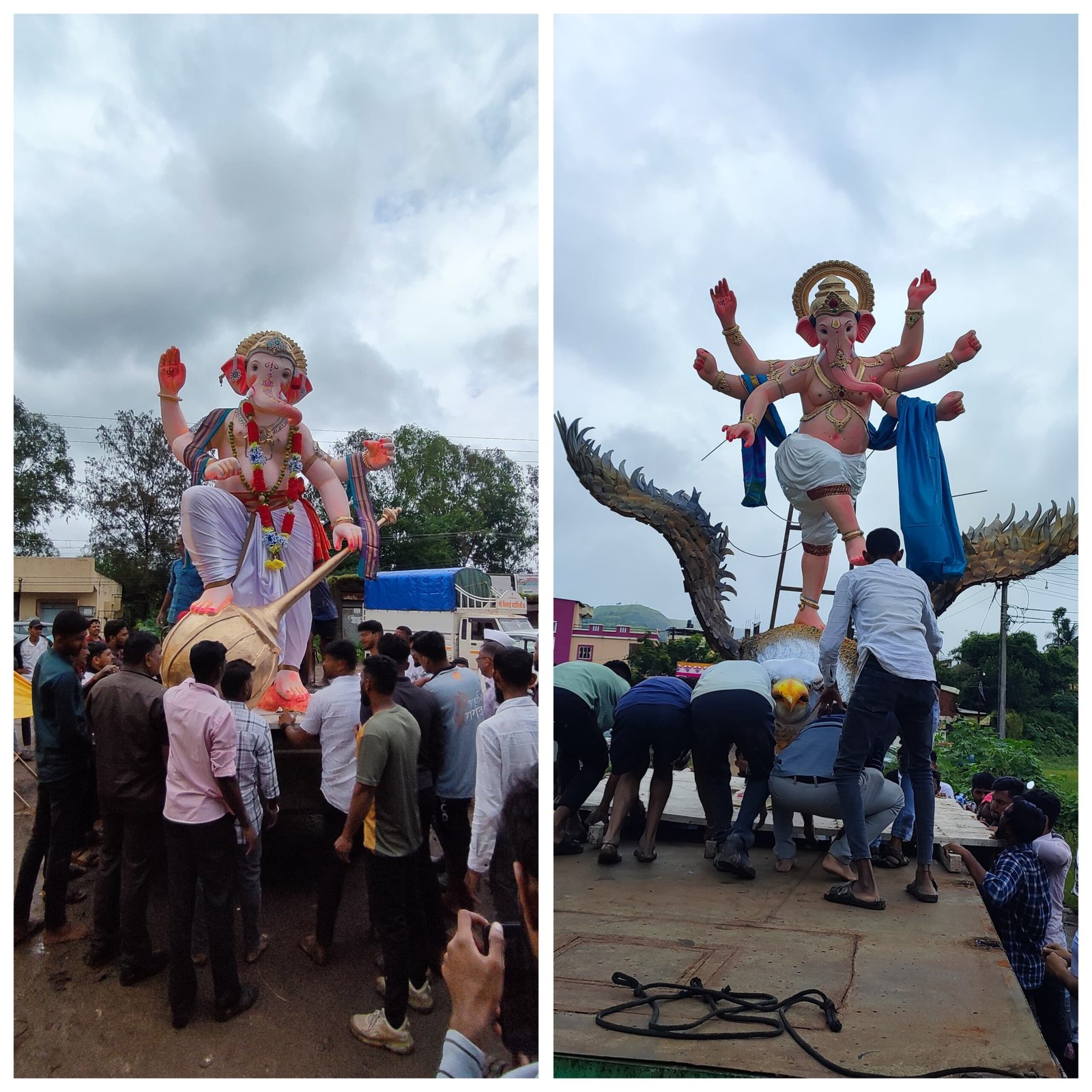 यांसह शासकीय कार्यालयांमध्येही गणरायाची प्रतिष्ठापना करण्यात आली.गणेशमूर्तींच्या उंचीचा ट्रेंड यावर्षी पाटण तालुक्यात पुणे आणि मुंबईसारख्या शहरांमधील उंच गणेशमूर्तींचा ट्रेंड पाहायला मिळाला. कुंभारवाड्यात १४ ते १५ फुट उंच गणेश मूर्ती तयार करण्यात आल्या होत्या. बाहेरून आलेल्या गणेश भक्तांनी या मूर्तींच्या आकर्षणामुळे दोन दिवसांपासून कुंभारवाड्यात मोठी गर्दी केली होती.सुरक्षा आणि व्यवस्था उत्सवाच्या काळात कोणताही अनुचित प्रकार घडू नये म्हणून कुंभारवाड्यात आणि पाटण शहरात पोलीस बंदोबस्त ठेवण्यात आला होता.