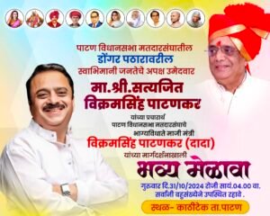 पाटण :–३१ऑक्टोबर पाटण विधानसभा मतदारसंघातील स्वाभिमानी जनतेचे अपक्ष उमेदवार मा. श्री. सत्यजित विक्रमसिंह पाटणकर यांच्या प्रचारार्थ एक भव्य मेळावा आयोजित करण्यात येणार आहे. हा मेळावा गुरुवार, दि. ३१ ऑक्टोबर २०२४ रोजी सायं.