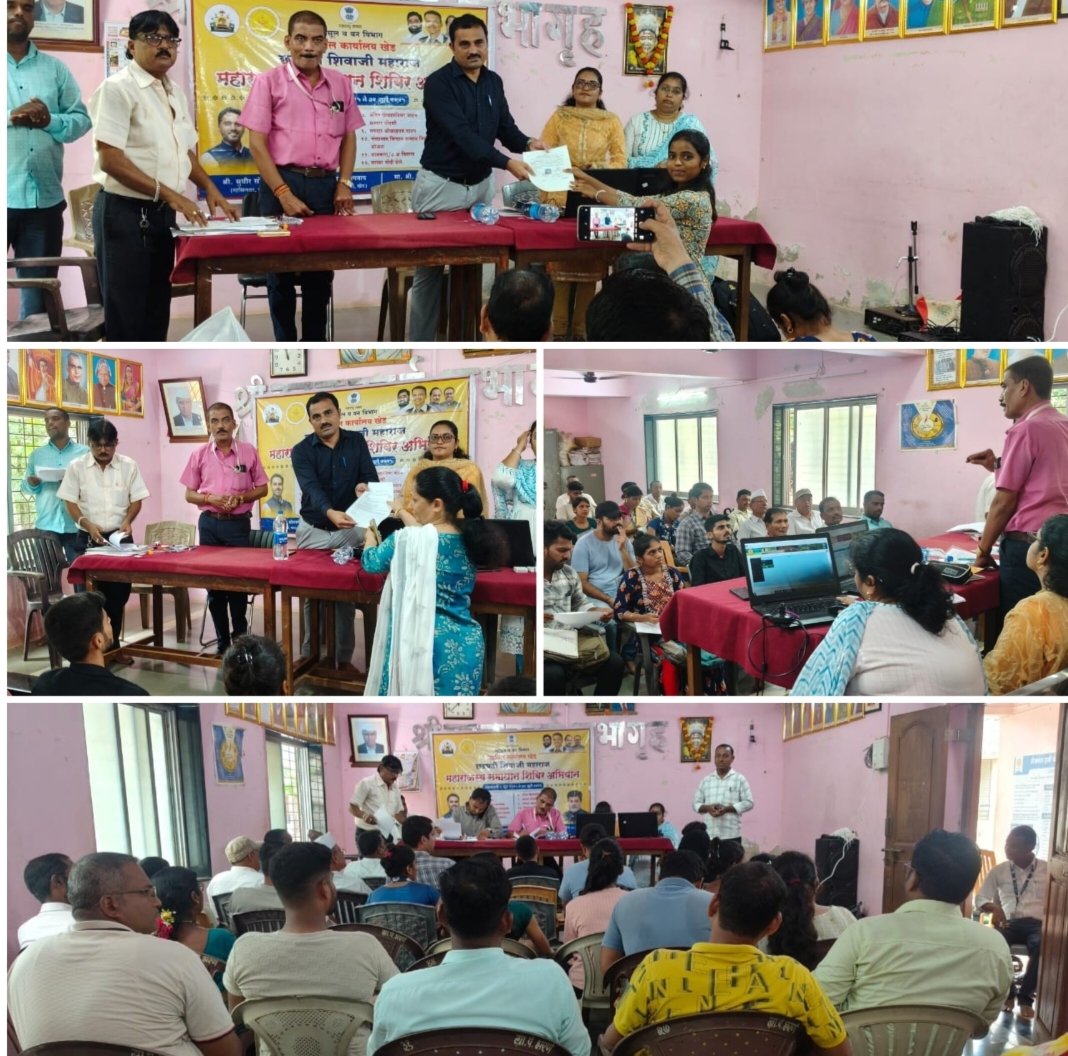 रत्नागिरी (खेड-भरणे) :- ११ जून मा. जिल्हाधिकारी रत्नागिरी व मा. उपविभागीय अधिकारी खेड यांच्या आदेशानुसार तसेच मा. तहसीलदार खेड यांच्या मार्गदर्शनाखाली आज बुधवार, दि. ११ जून २०२५ रोजी महसूल मंडळ भरणे येथे छत्रपती शिवाजी महाराज महा राजस्व अभियानांतर्गत एकदिवसीय विशेष शिबिराचे आयोजन करण्यात आले. हे शिबिर काळकाई सभागृह, ग्रामपंचायत कार्यालय, भरणे येथे पार पडले.कार्यक्रमाचे प्रमुख पाहुणे म्हणून मा. सुधीर सोनावणे रावसाहेब, तहसीलदार खेड यांनी उपस्थित राहून