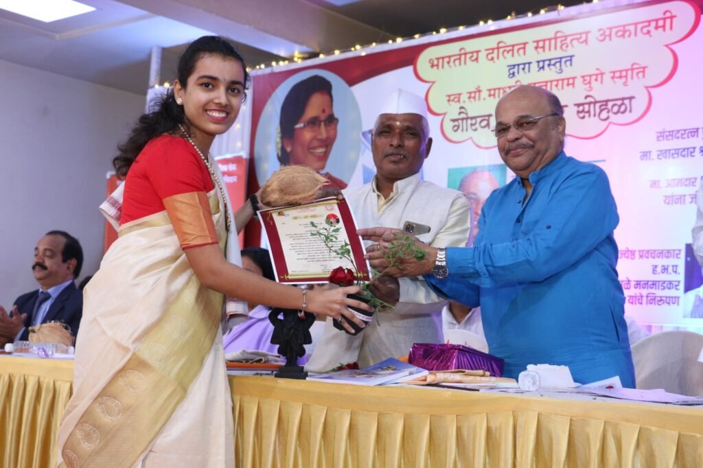मुंबई :- भारतीय दलित साहित्य अकादमीतर्फे स्वर्गीय माधुरी दत्ताराम घुगे स्मृतिप्रित्यर्थ पत्रकारिता क्षेत्रात उल्लेखनीय कामगिरी केल्याबद्दल कु. गायत्री सरला दिनेश...