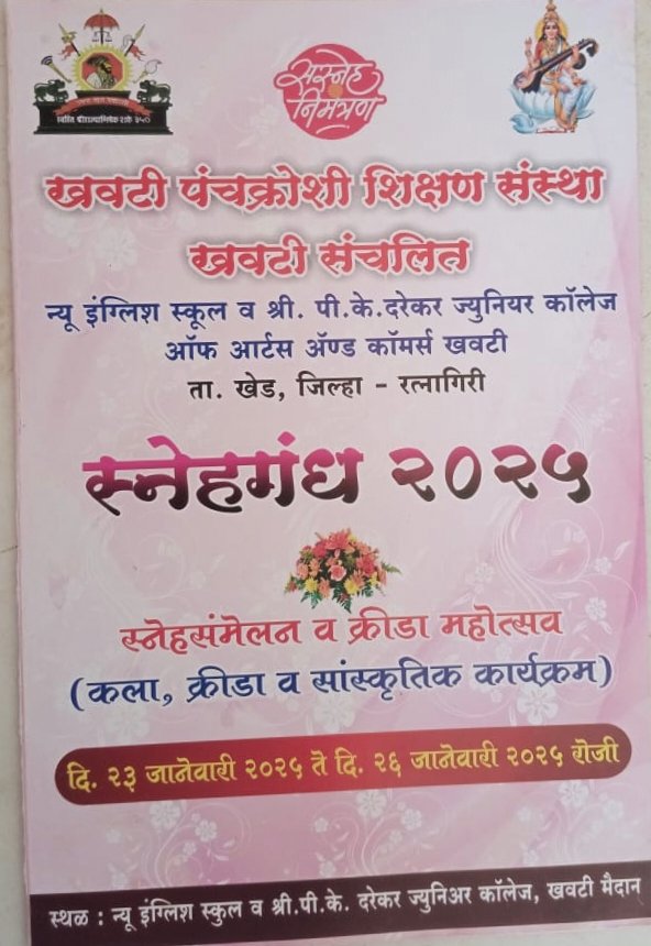 प्रतिनिधी राजेंद्र दळवी रत्नागिरी (खेड) :- खवटी पंचक्रोशी शिक्षण संस्था संचलित न्यू इंग्लिश स्कूल व श्री. पी.के. दरेकर ज्युनियर कॉलेज...