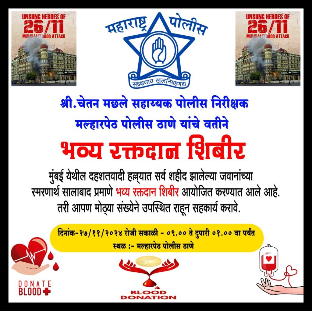 प्रतिनिधी शशिकांत मटाने पाटण - मल्हारपेठ, २७ नोव्हेंबर २०२४ मुंबई येथील २६/११ च्या दहशतवादी हल्ल्यात शहीद झालेल्या वीर जवानांच्या स्मरणार्थ,...